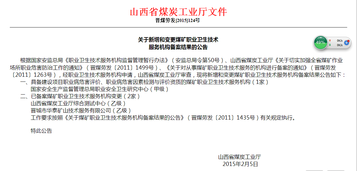 晉城國投華泰科技有限公司(以下簡稱華泰公司)是一家經(jīng)營性國有企業(yè),注冊資金1000.2萬元(由晉城市華泰礦山技術(shù)服務(wù)有限公司和晉城澤泰安全技術(shù)服務(wù)有限公司合并整合組建,國投全資)。公司持有山西省衛(wèi)生健康委員會頒發(fā)的《職業(yè)衛(wèi)生技術(shù)服務(wù)資質(zhì)證書》、山西省應(yīng)急管理局頒發(fā)的《安全評價機構(gòu)資質(zhì)證書》和山西省市場監(jiān)督管理局頒發(fā)的《檢驗檢測機構(gòu)資質(zhì)認(rèn)定證書》等資質(zhì),設(shè)施設(shè)備、能力、資質(zhì)配套齊全。...【詳細(xì)信息】